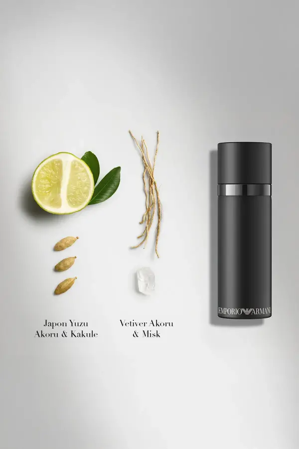 ·Taze ve canlı Japon yuzu akorunun duyusal miskler, baharatlı kakule ve maskülen vetiver ile birleşiminden manyetik çekici bir uyum ortaya çıktı.