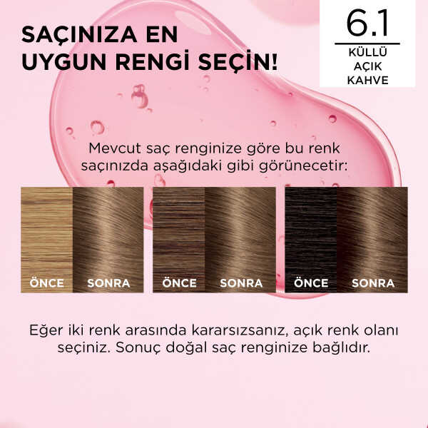 Excellence Creme ile boyama öncesine göre gözle görülür daha bakımlı saçlar! Excellence Creme beyazları %100 kapatırken daha sağlıklı görünen saçlar için saça nemi hapseder. Hyaluronik Asitle zenginleştirilen formülüyle 2 kat daha zengin renk karışımı* ve 10 kat daha fazla** nemlendirme sunar.