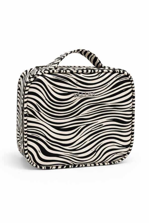 Muudaa Zebra Desenli Kadın Makyaj Çanta Büyük Kutu Model